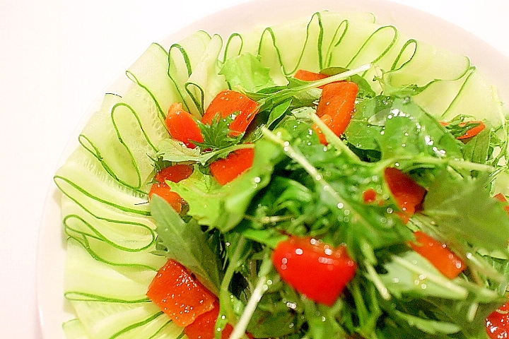 盛り付け技 キュウリのリボンサラダ レシピ 作り方 By Seika A 楽天レシピ